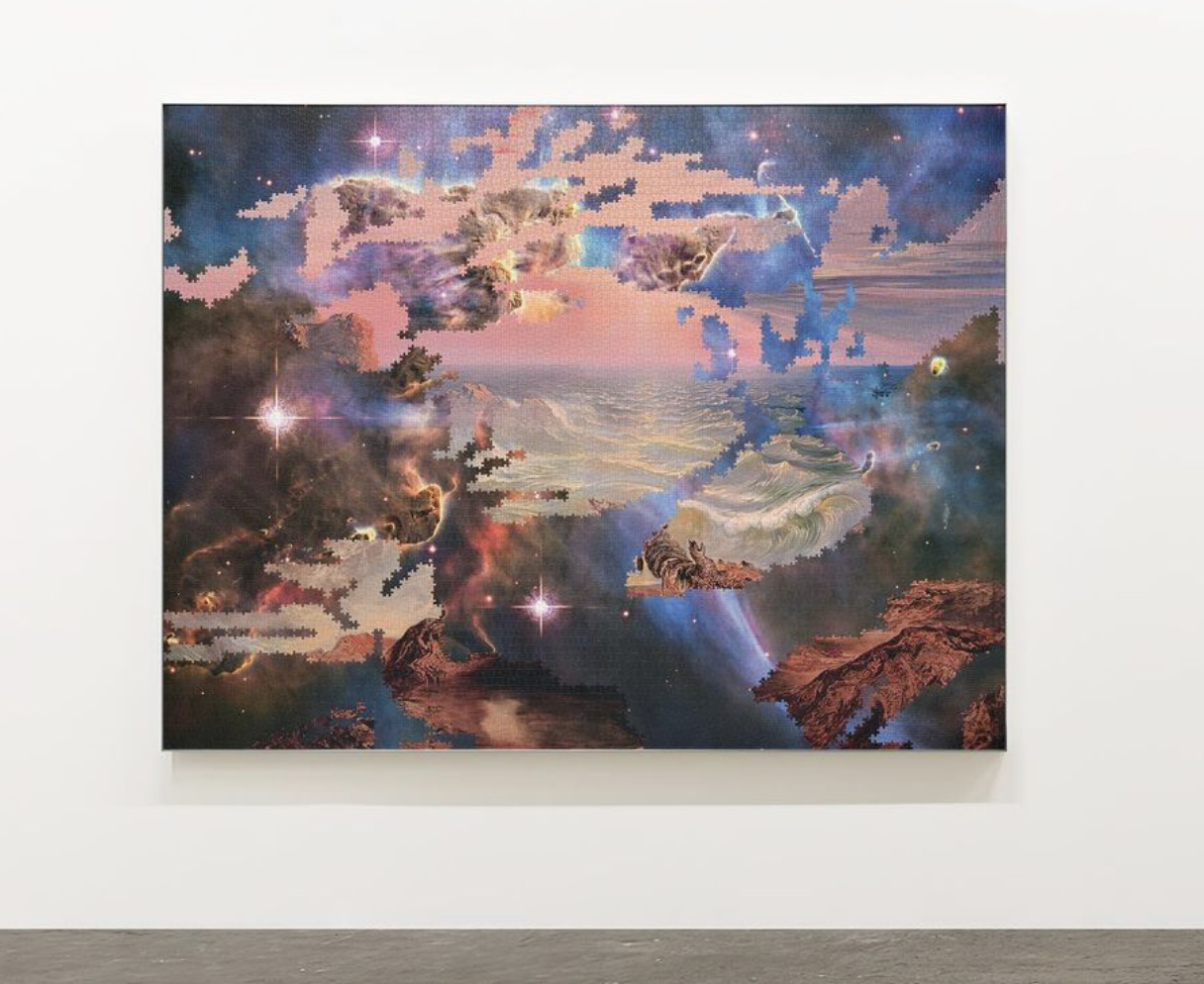 Read this to dive into the background (literally) of these jigsaw puzzle works of art by Zac Langdon-Pole. They remind me of the eye-spy posters of the 90's where you'd squint your eyes—or whatever method you could muster—to "see" what was hidden in the image. I love the hidden meaning and the ethereal visual effects of the compositions.